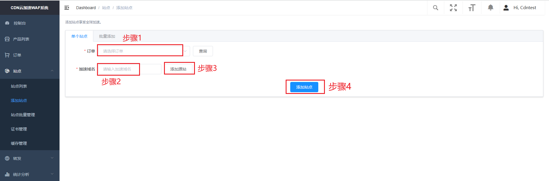 1、添加单个站点